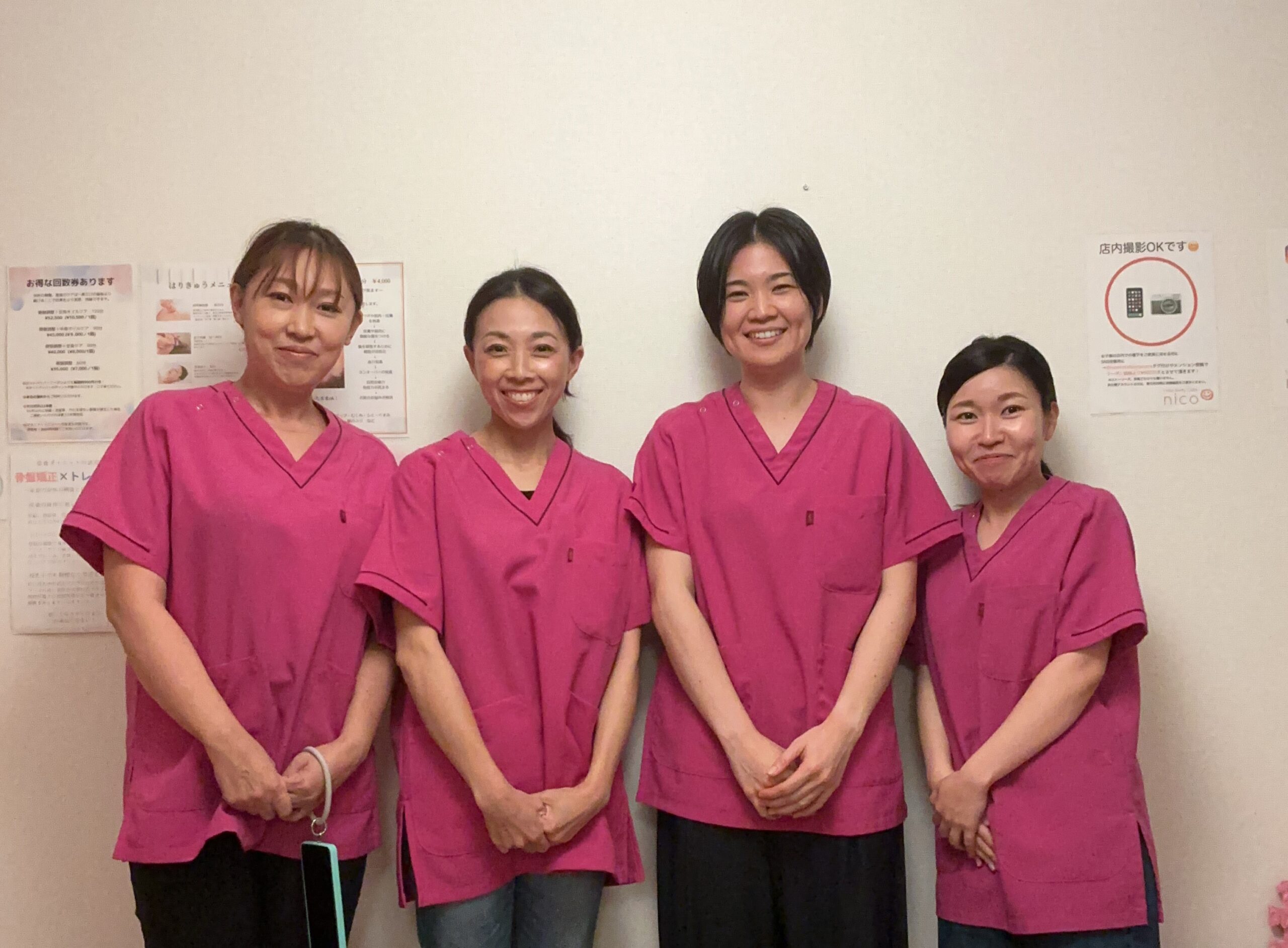 女性のための骨盤整体nicoでは確かな技術と知識と経験でしっかりと結果を出せる施術を受けて頂けるよう、どの店舗のスタッフも全員、柔道整復師、鍼灸師、あんま指圧マッサージ師など複数の国家資格を保持・経験年数も10年以上。